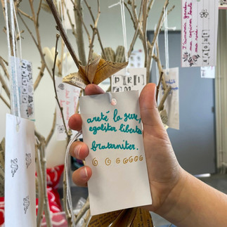 L’Arbre à Vœux est une œuvre participative et poétique, réalisée à partir de matériaux recyclés – notamment de vieux livres détournés pour leur donner une nouvelle vie.Chaque participant y a accroché un vœu, une pensée, un message… transformant cette installation en une œuvre unique, fédératrice et durable.