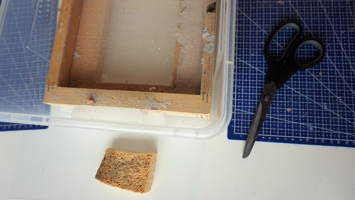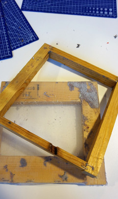 1. Première étape: fabriquer le tamis. Prenez un cadre et découper un tissu filtrant plus grand pour l'agrafer au cadre bien tendu.